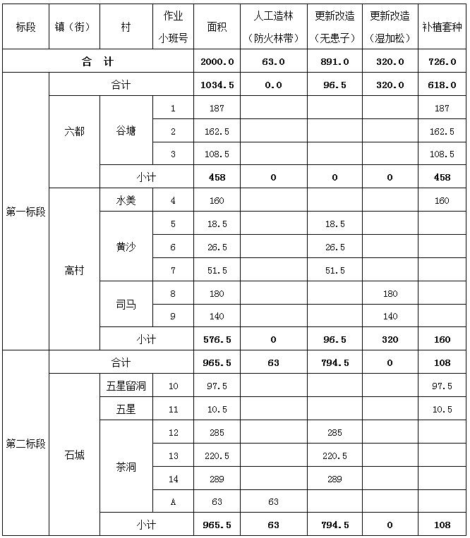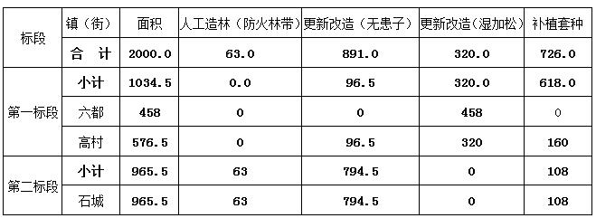 (二)、采購文件第二章 用戶需求書P7中“四、云安區2020年森林碳匯重點生態工程項目要求--(四)建設工程量”