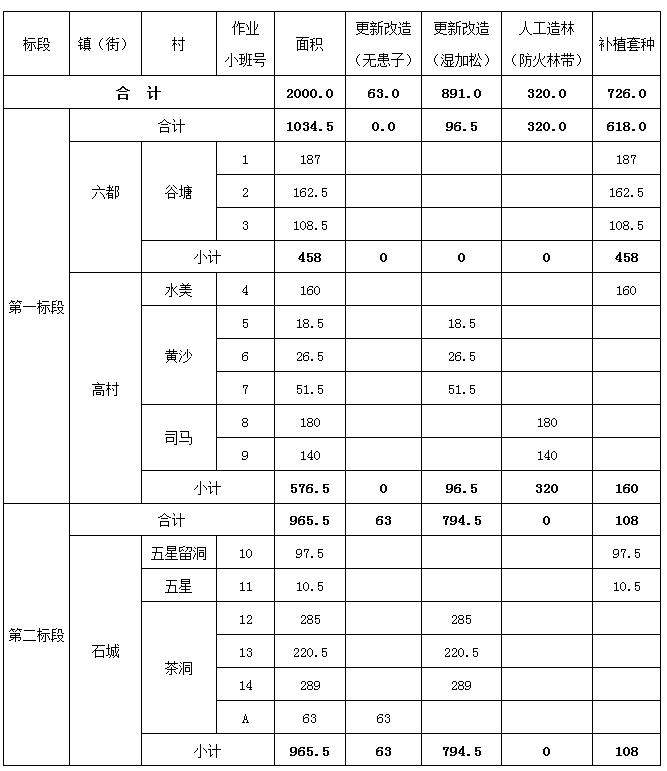 云安區2020年森林碳匯重點生態工程造林項目各造林小班面積統計表